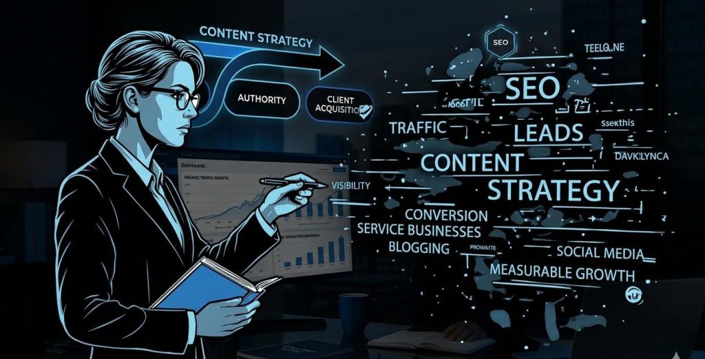 A content strategy for service business is a structured plan to create, publish, and optimize content that attracts, educates, and converts ideal clients through SEO content, blogging, and social platforms.